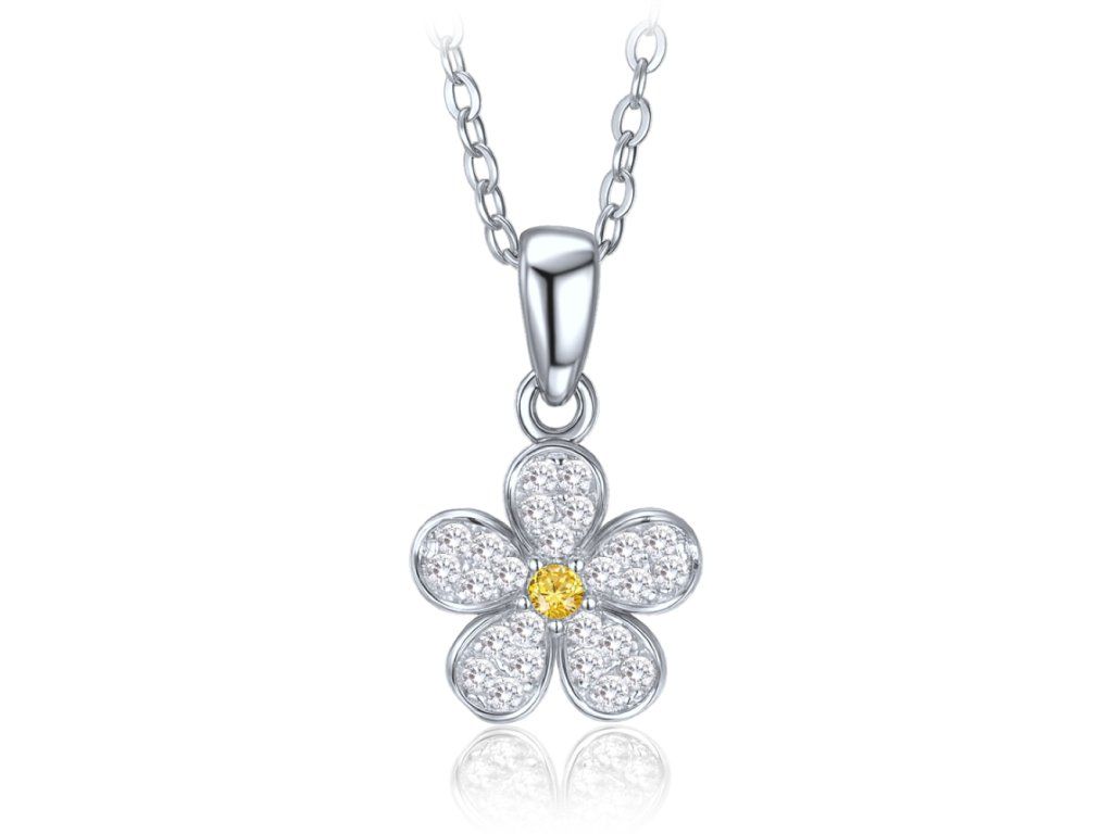 MINET Dětský stříbrný náhrdelník kytička se žlutým a bílým zirkonem