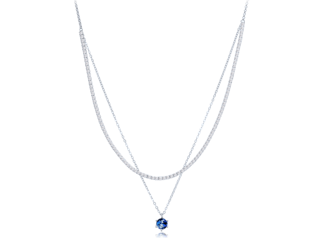 Dvojitý náhrdelník ze stříbra Ag 925/1000 s rhodiovaným povrchem si zachovává lesk i barvu. Kombinace tmavě modrého a bílého zirkonu dodává elegantní kontrast. MINET je česká značka zaměřená na kvalitní hodinky a šperky ze stříbra a zlata.MATERIÁL: stříbro 925/1000