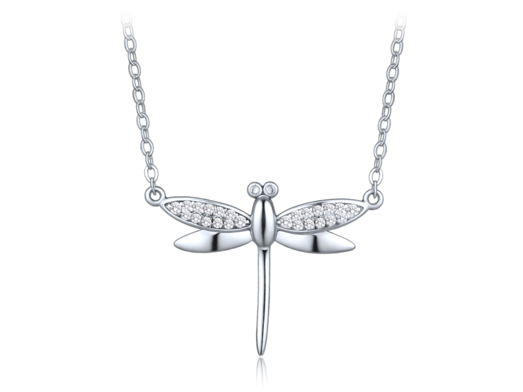 MINET Stříbrný náhrdelník vážka s bílým zirkonem