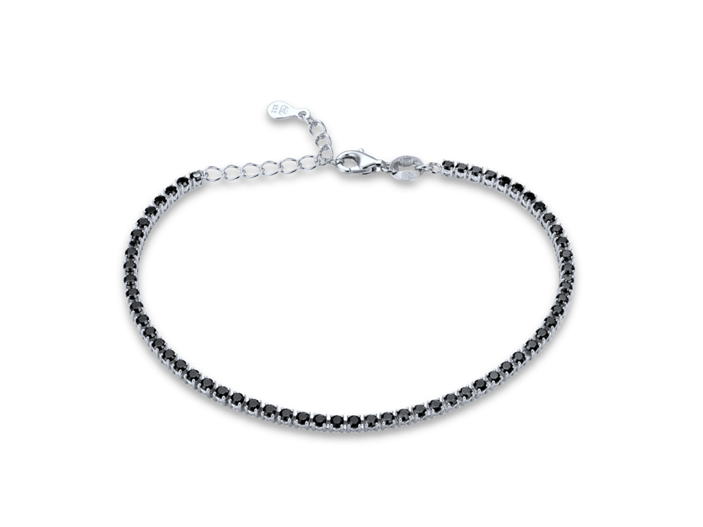 MINET Stříbrný tenisový náramek s černými zirkony