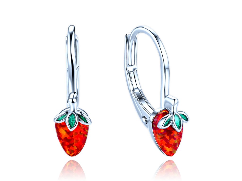 MINET Dětské stříbrné náušnice jahůdky s červeným opálem