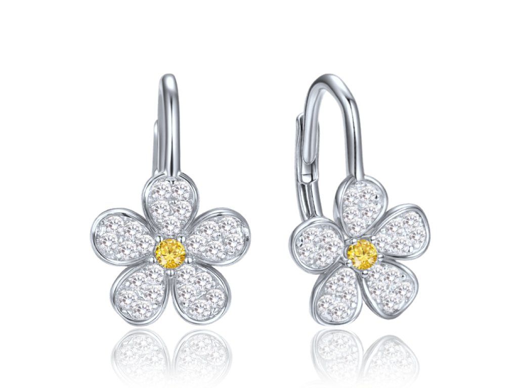 MINET Dětské stříbrné náušnice kytička se žlutými a bílými zirkony