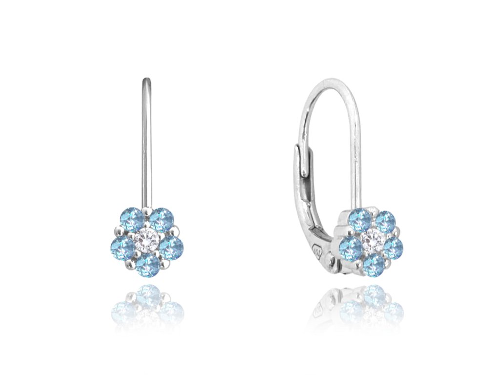 MINET Dětské stříbrné náušnice KYTIČKY se světle modrými zirkony
