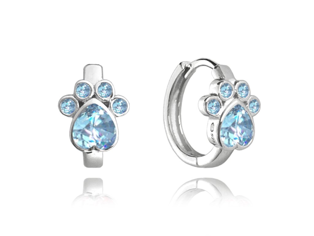 MINET Dětské stříbrné náušnice TLAPKY s modrými zirkony