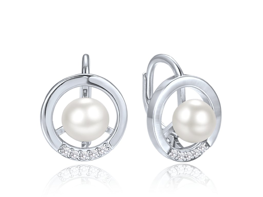 Stříbrné náušnice MINET s motivem kroužků, perlou a zirkony jsou vyrobeny ze stříbra Ag 925/1000 s rhodiovaným povrchem pro zachování barvy i lesku. Patentové zapínání zajišťuje bezpečné nošení. Elegantní kombinace perly a třpytu je nadčasová.MATERIÁL: stříbro 925/1000