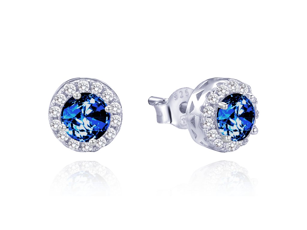 MINET Elegantní stříbrné náušnice s bílými a modrými zirkony