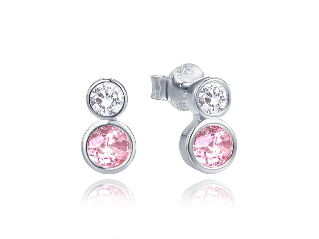 MINET Elegantní stříbrné náušnice s bílými a růžovými zirkony