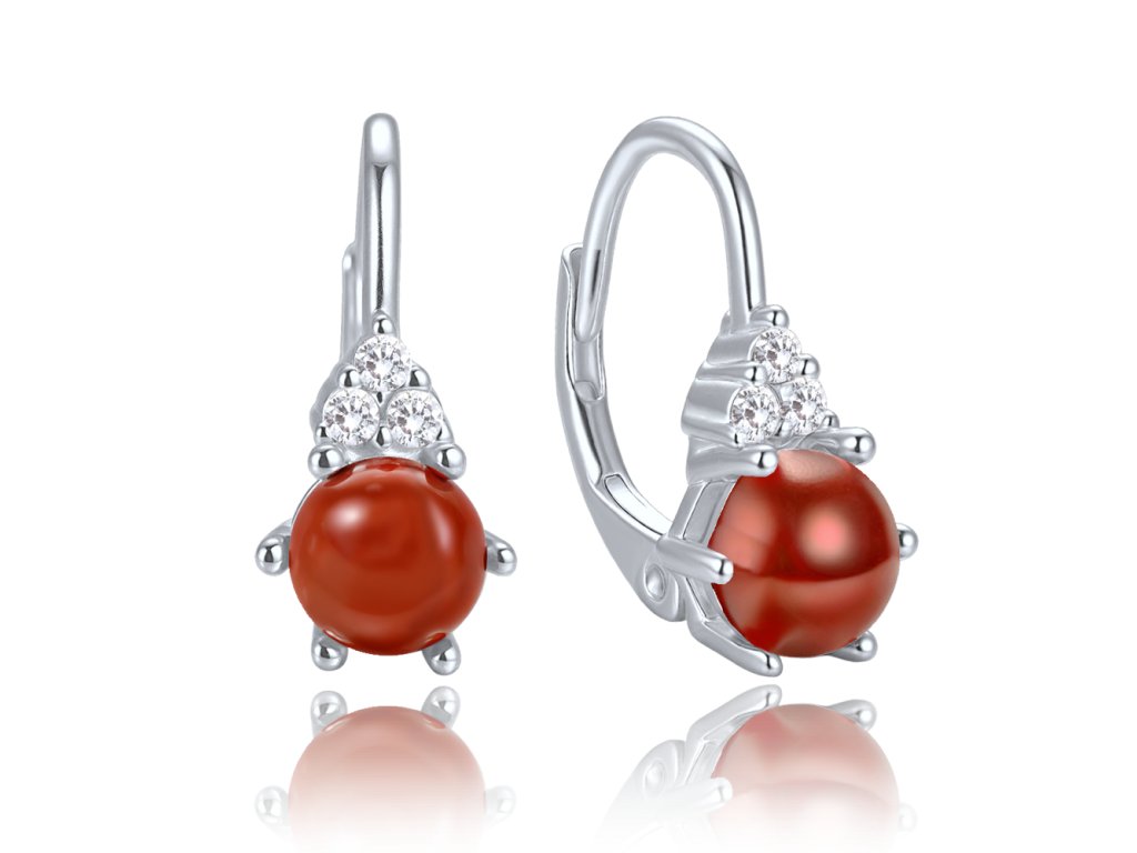 Šperky značky MINET spojují jemnost, kvalitu a nadčasový design. Náušnice jsou vyrobeny z pravého rhodiovaného stříbra Ag 925/1000, které si dlouho udrží svou barvu i lesk. Šperk zdobí červený jaspis a bílé zirkony. Zapínání je řešeno patentem pro bezpečné nošení.MATERIÁL: stříbro 925/1000