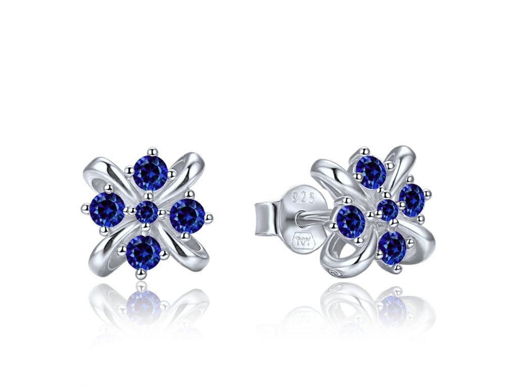 MINET Elegantní stříbrné náušnice s modrými zirkony