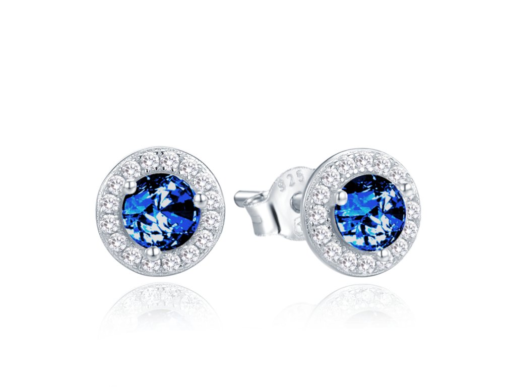 MINET Elegantní stříbrné náušnice s modrými zirkony
