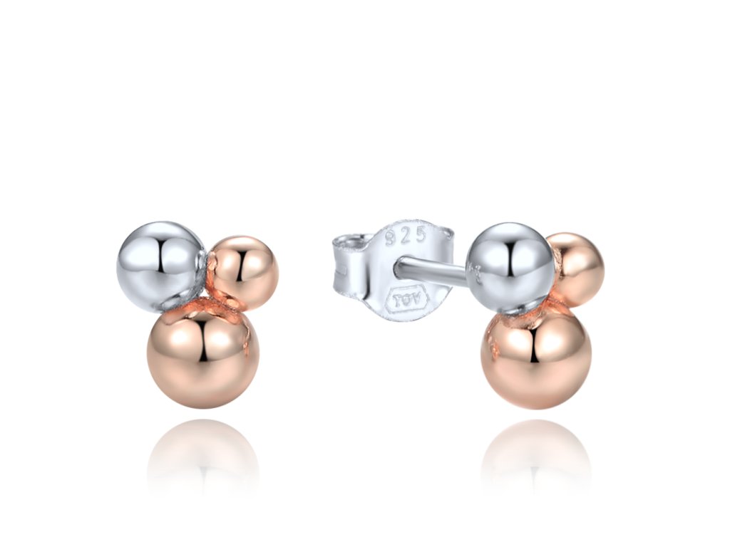 MINET Elegantní stříbrné náušnice se stříbrnými a Rosegold kuličkami