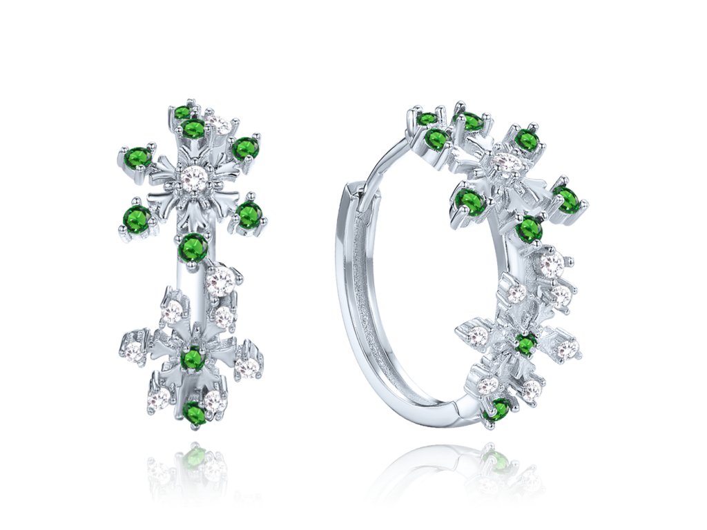 MINET Elegantní stříbrné náušnice vločky s bílými a zelenými zirkony