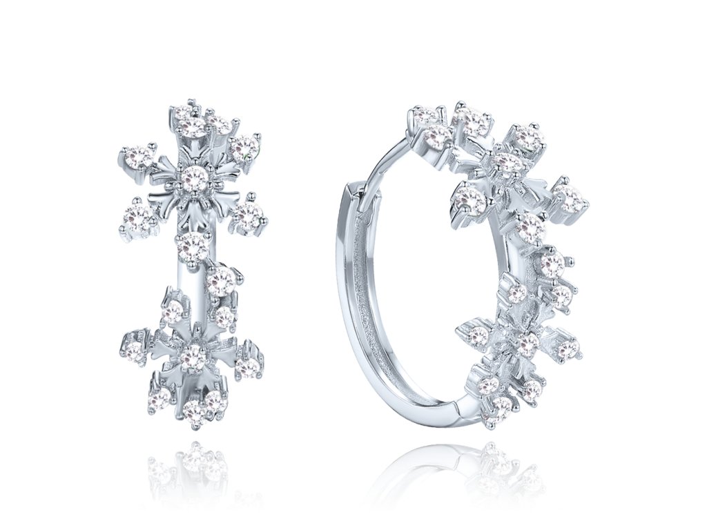 MINET Elegantní stříbrné náušnice vločky s bílými zirkony