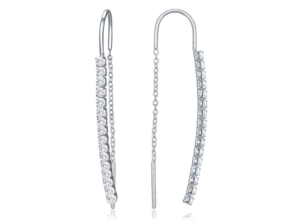 Elegantní závěsné náušnice MINET ze stříbra Ag 925/1000 s rhodiovaným povrchem si zachovávají svůj lesk i barvu. Bílé zirkony dodávají výrazný třpyt a podtrhují sofistikovaný vzhled vhodný pro každodenní i večerní nošení. MINET je česká značka zaměřená na kvalitní hodinky a šperky ze stříbra a zlata.MATERIÁL: stříbro 925/1000