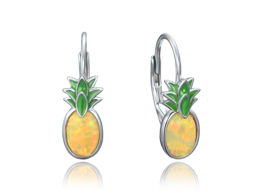 MINET Letní stříbrné náušnice ananasy se žlutým opálem