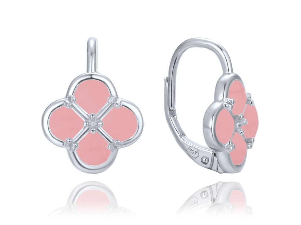 MINET Stříbrné náušnice čtyřlístky s jadeitem