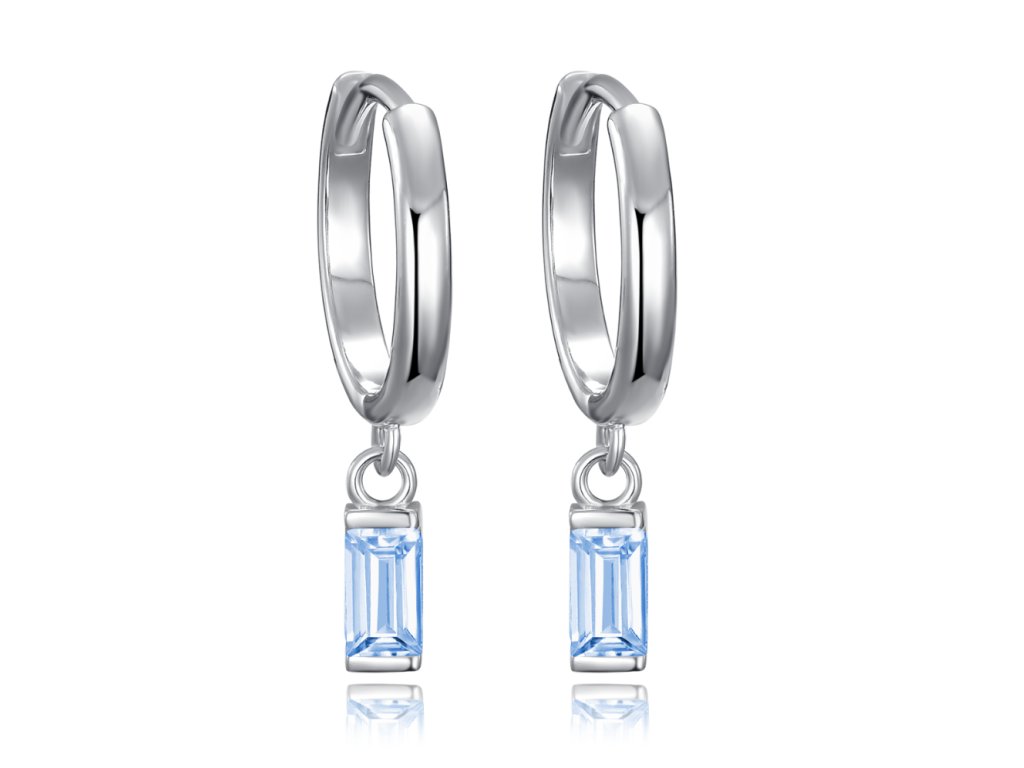MINET Stříbrné náušnice kroužky s visícími modrými zirkony