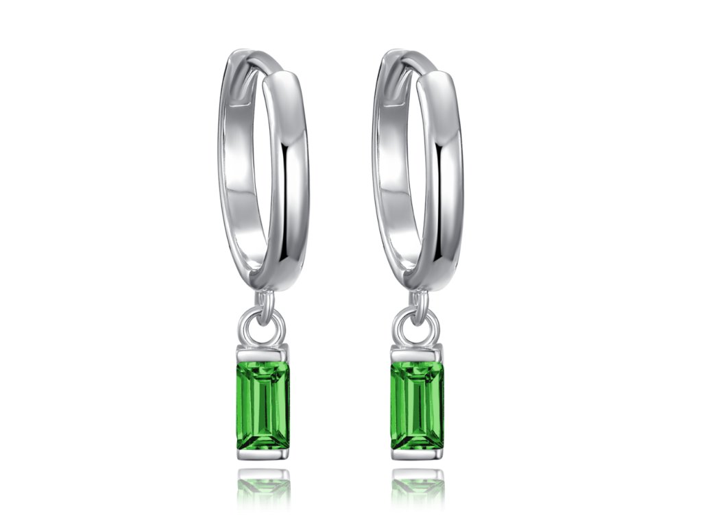 MINET Stříbrné náušnice kroužky s visícími zelenými zirkony