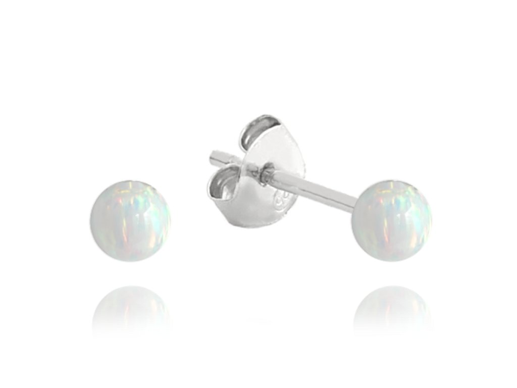 MINET Stříbrné náušnice KULIČKY s bílými opálky 3mm