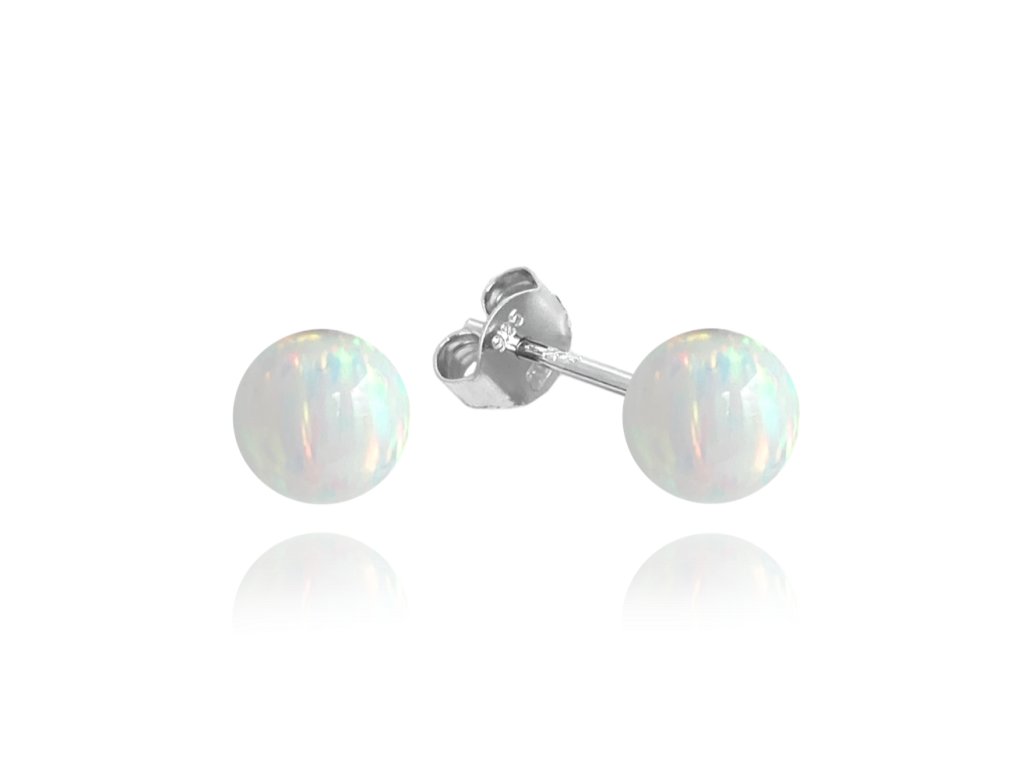 MINET Stříbrné náušnice KULIČKY s bílými opálky 6mm