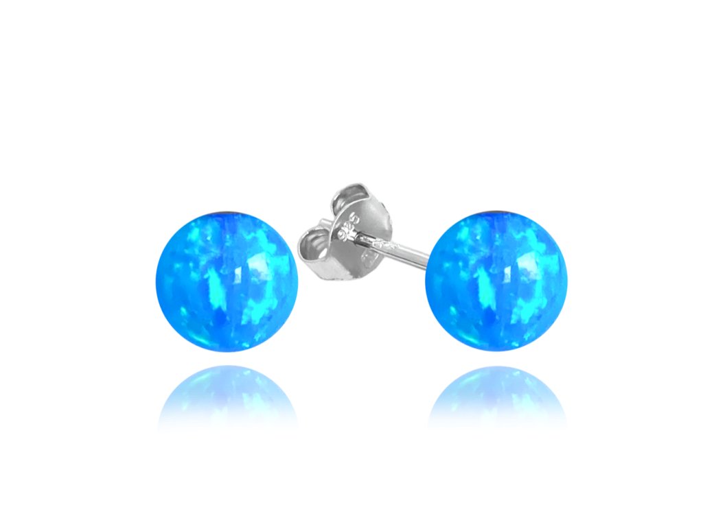 MINET Stříbrné náušnice KULIČKY se světle modrými opálky 8mm