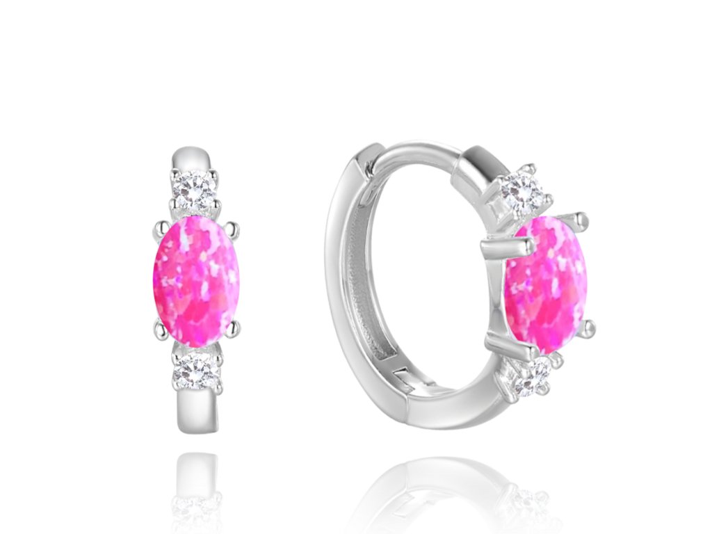 MINET Stříbrné náušnice s růžovými opálky