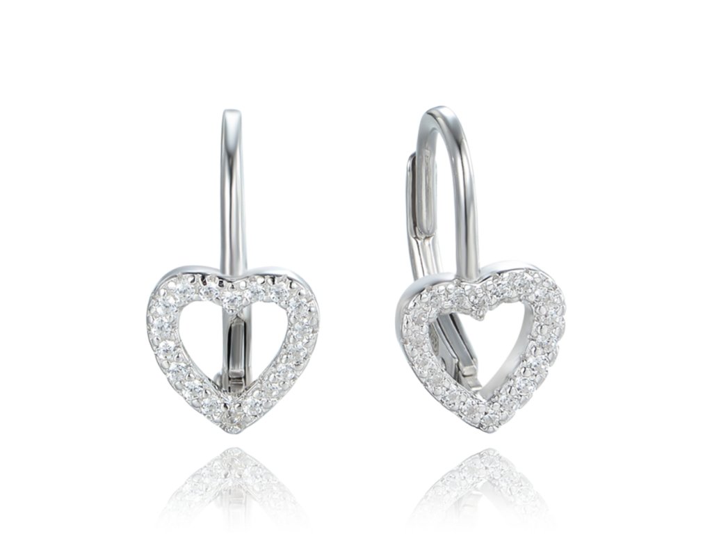 MINET Stříbrné náušnice srdce s bílými zirkony