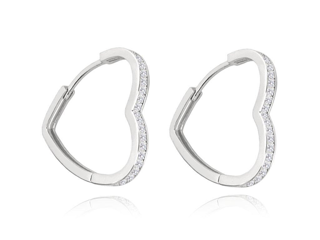 MINET Stříbrné náušnice SRDÍČKA s bílými zirkony