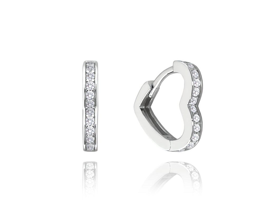 MINET Stříbrné náušnice SRDÍČKA s bílými zirkony
