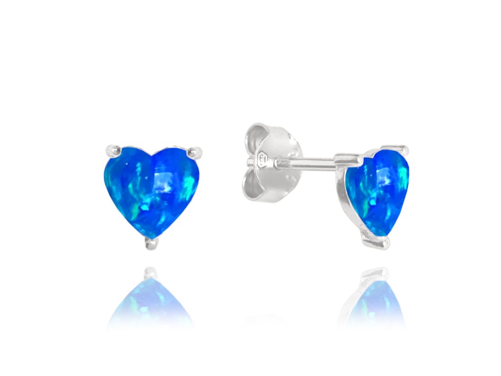 MINET Stříbrné náušnice SRDÍČKA s modrými opálky