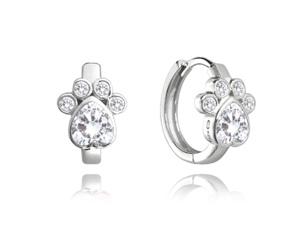 MINET Dětské stříbrné náušnice TLAPKY s bílými zirkony