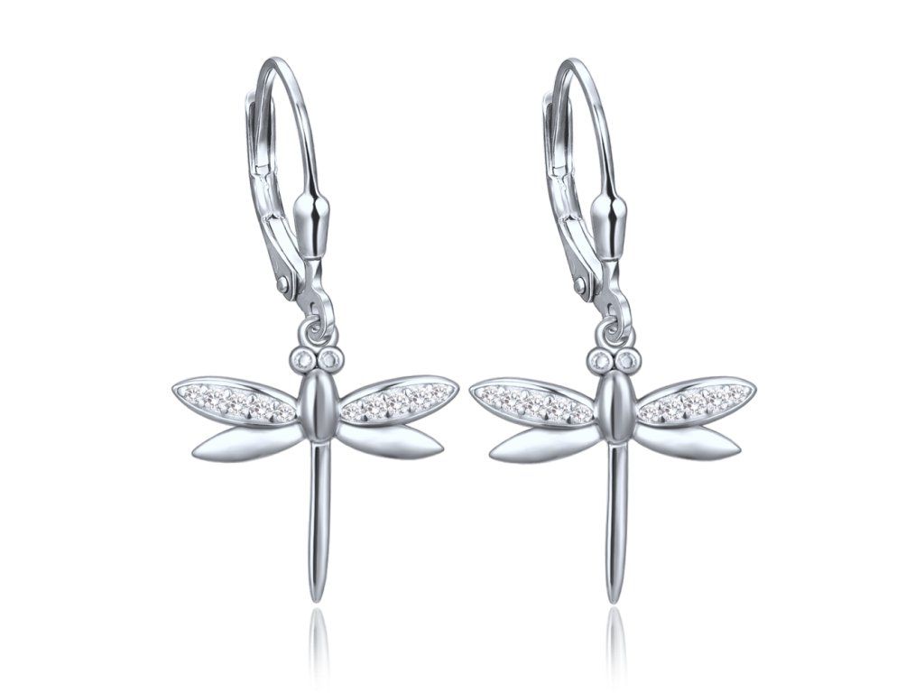 MINET Stříbrné náušnice vážka s bílými zirkony