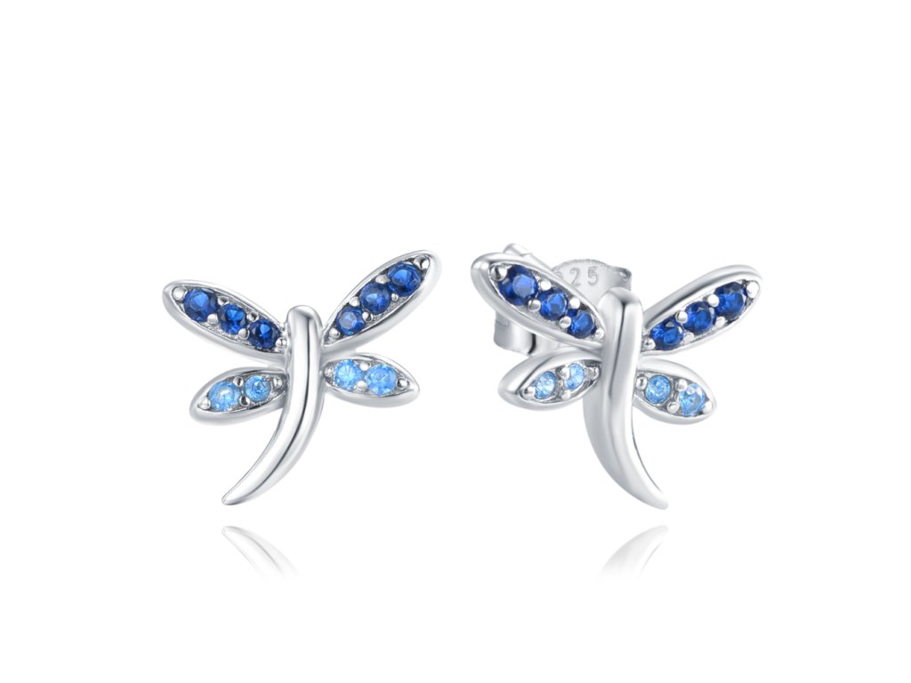 MINET Stříbrné náušnice vážky s modrými zirkony