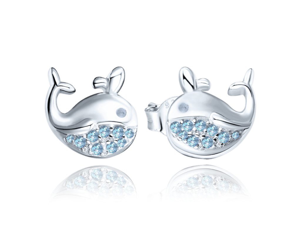 MINET Stříbrné náušnice VELRYBY s modrými zirkony