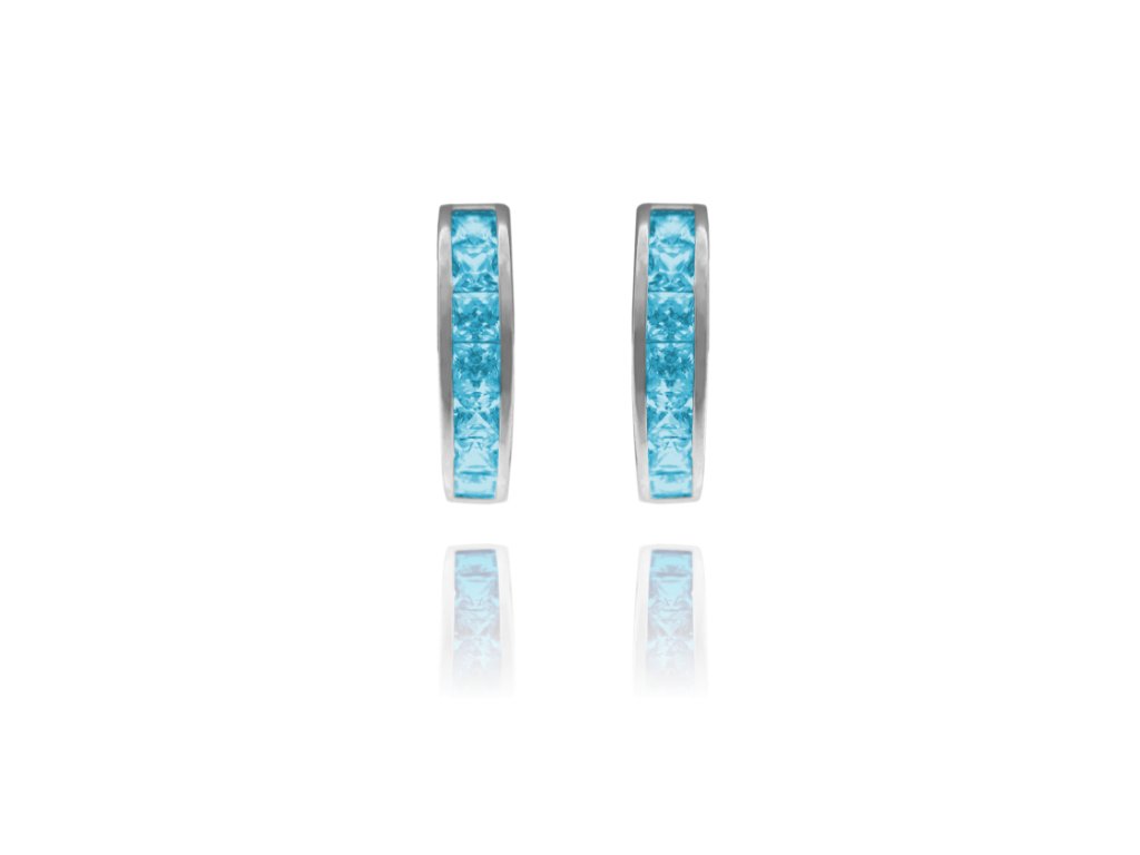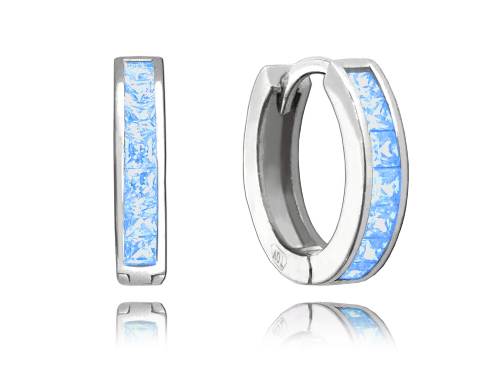 Bledě modré náušnice kroužky jsou díky praktickému zapínání a tvaru pohodlné pro každodenní nošení. Modré zirkony se krásně třpytí a ozvláštníte jimi svůj outfit. Povrch stříbra je z rhodia, náušnice tedy neztratí svůj zářivý lesk a barvu.MATERIÁL: stříbro 925/1000