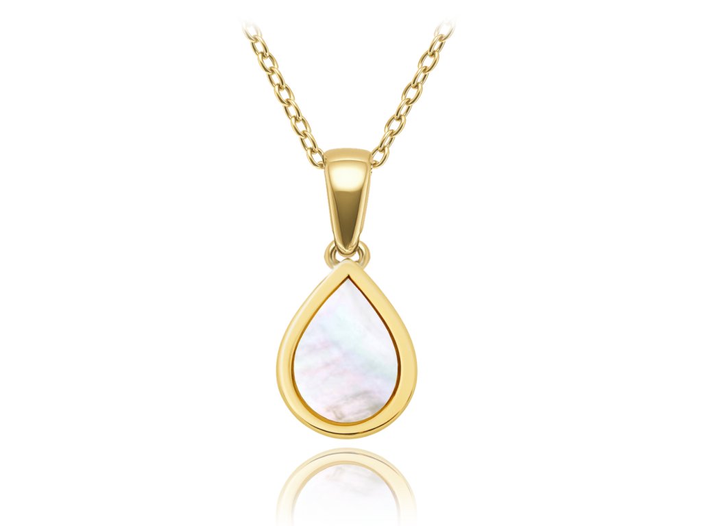 MINET Elegantní zlatý náhrdelník kapka s bílou perletí Au 585/1000 2,20g