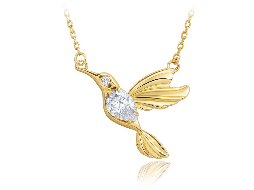 Zlatý náhrdelník s motivem kolibříka a bílým zirkonem z pravého 14karátového zlata symbolizuje lehkost a svobodu. Ideální pro ženy, které milují originální detaily. Šperky jsou opatřeny puncem potvrzujícím ryzost 585/1000. Pociťte sílu sebevědomí, které vám dodají zlaté šperky české značky MINET. Vyzdvihněte svůj osobitý styl a dopřejte si pocit výjimečnosti, díky kterému bude váš outfit dokonalý.MATERIÁL: zlato 585/1000