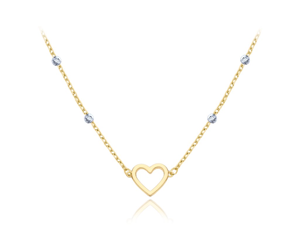MINET Zlatý náhrdelník srdíčko v kombinaci bílého a žlutého zlata Au 585/1000 1,50g