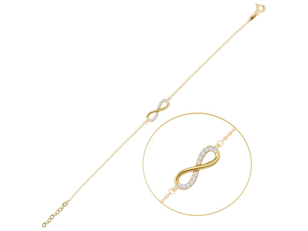 MINET Elegantní zlatý náramek nekonečno s bílými zirkony Au 585/1000 1,15g