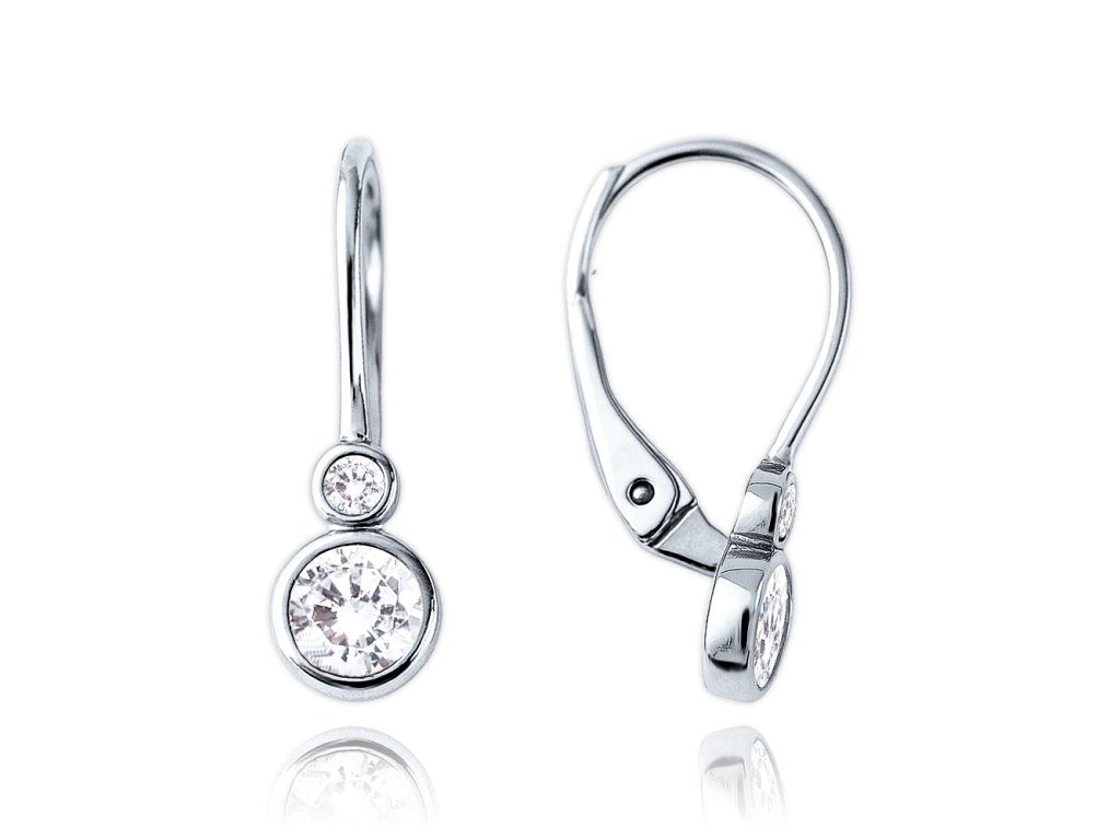 MINET Dětské zlaté náušnice z bílého zlata s bílými zirkony Au 585/1000 1,65g