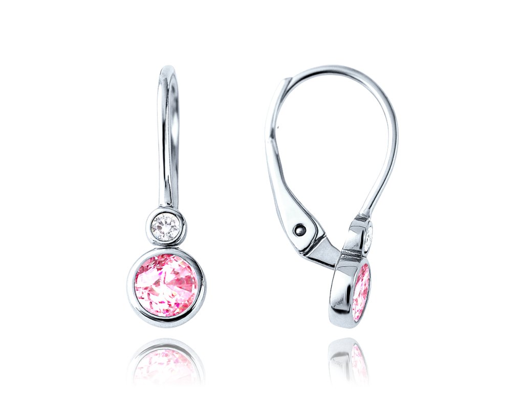 MINET Elegantní náušnice z bílého zlata s bílými a růžovými zirkony Au 585/1000 1,70g