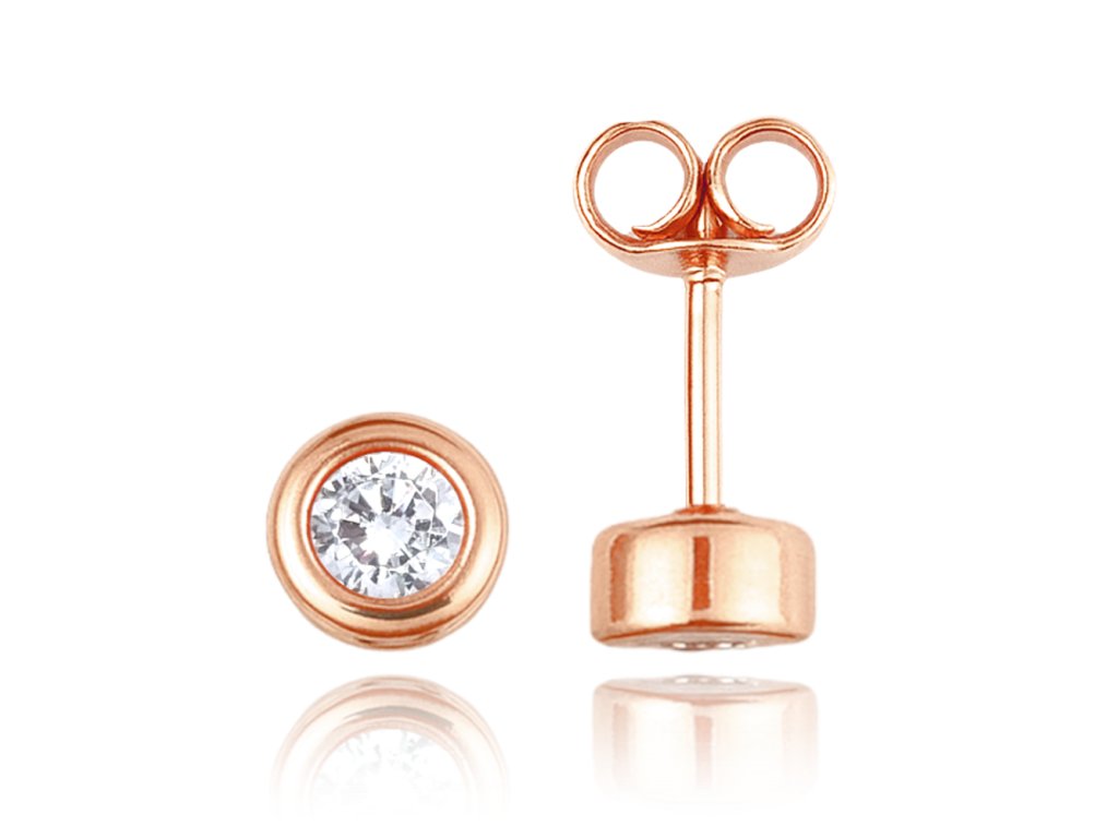 MINET Elegantní zlaté náušnice z růžového zlata s bílými zirkony Au 585/1000 1,35g