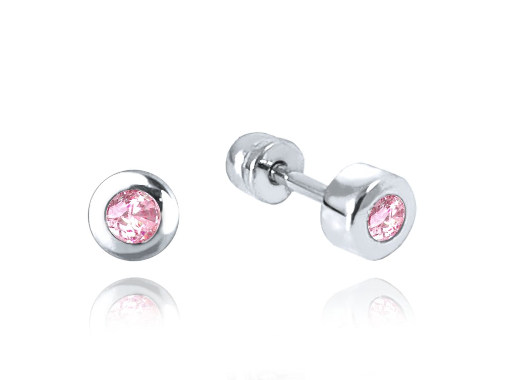 MINET Náušnice na šroubek z bílého zlata s růžovými zirkony Au 585/1000 1,15g