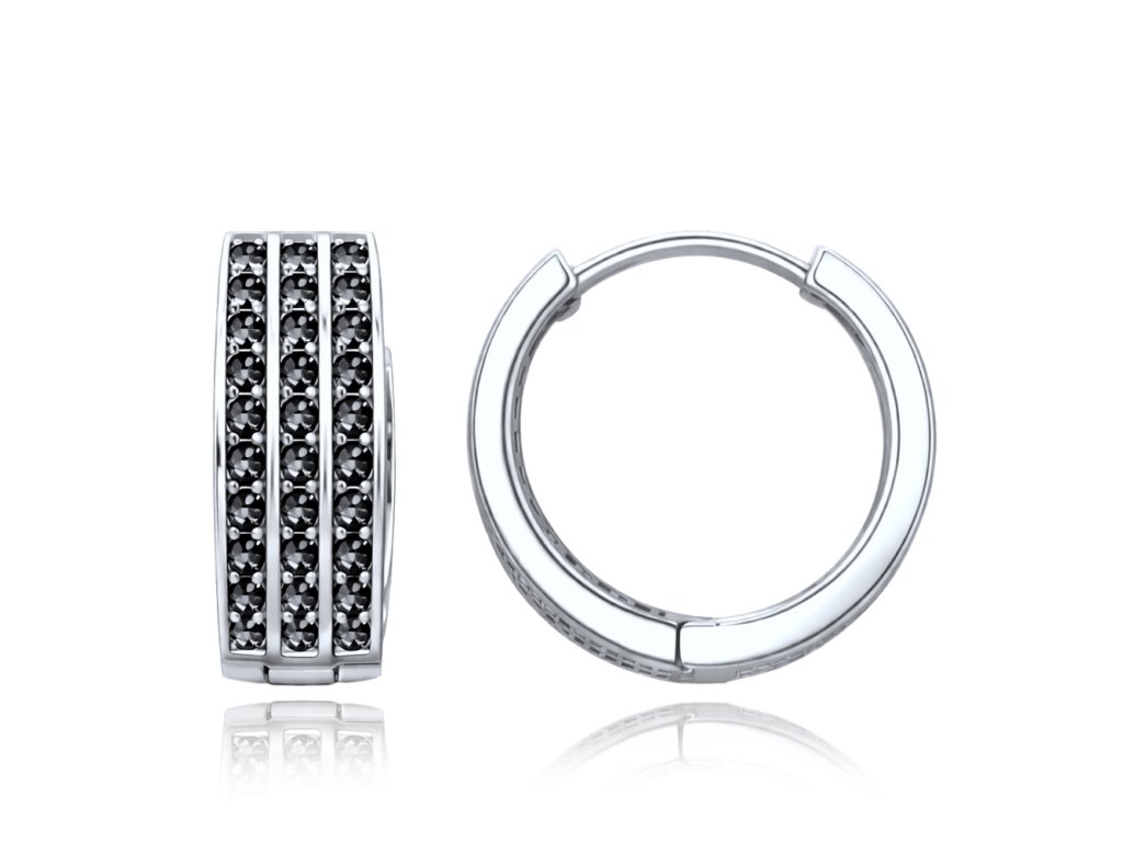 MINET Zlaté náušnice kroužky z bílého zlata s černými zirkony Au 585/1000 2,50g