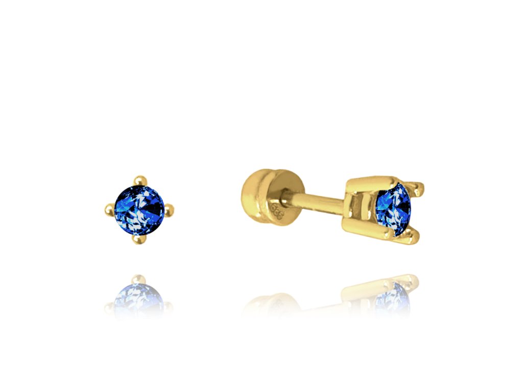 MINET Zlaté náušnice na šroubek s tmavě modrými zirkony Au 585/1000 1,10g