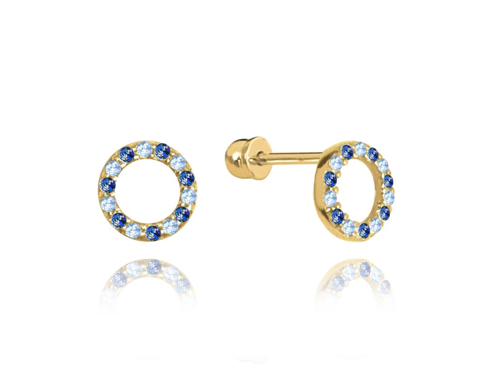 MINET Zlaté náušnice na šroubek se světle a tmavě modrými zirkony Au 585/1000 1,35g