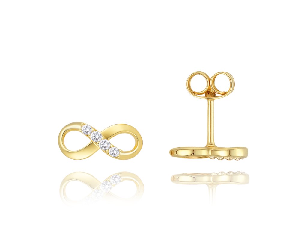MINET Zlaté náušnice nekonečno s bílými zirkony Au 585/1000 1,05g