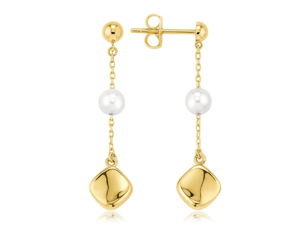 MINET Zlaté náušnice s řetízkem a perlou Au 585/1000 1,50g