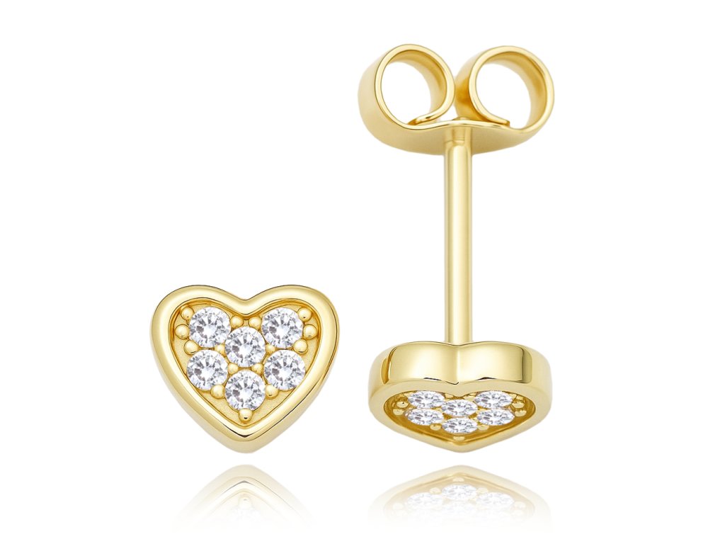 MINET Zlaté náušnice srdce s bílými zirkony Au 585/1000 0,95g
