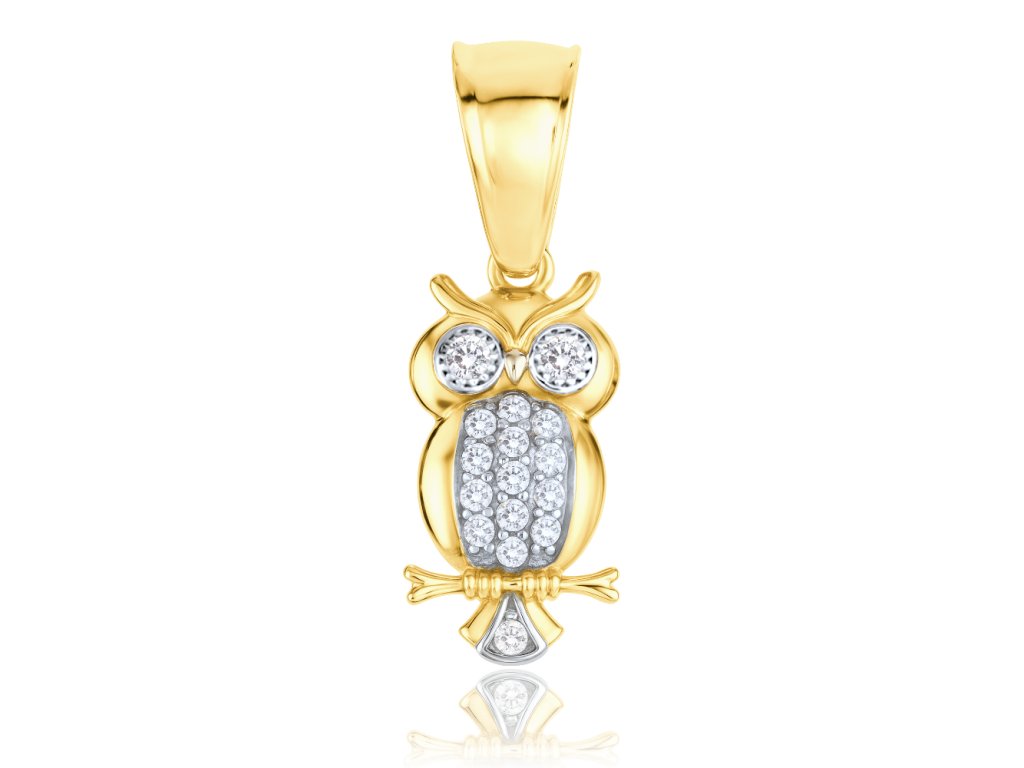 MINET Zlatý přívěs sova s bílými zirkony Au 585/1000 1,35g